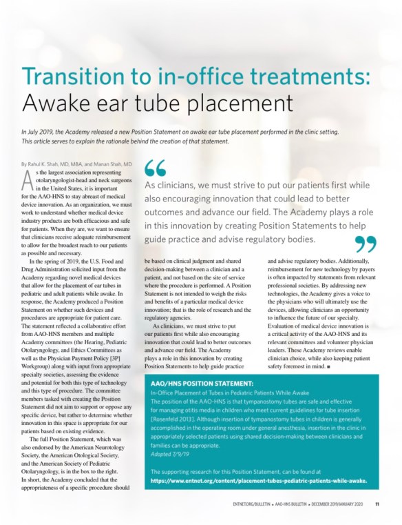 To help physicians and ENTs seeking to quickly adopt telemedicine into their practice, I have posted my slides from this panel below. The slides describe the currently available tools for telemedicine and discuss the pros/cons of different platforms, as well as cost and use cases. *I have added an additional slide into this presentation relating to recent changes made by HHS during the COVID-19 crisis.**the academy has graciously made the video of the full talk available to everyone on YouTube. The link is also below! It can also be found for members at The AAO-HNS website under the 2019 annual meeting webcast.